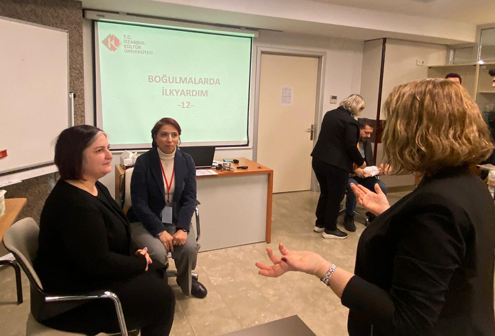 İstanbul Kültür Üniversitesi Hemşirelik Bölümü tarafından, toplumsal sağlık bilincini artırmak ve hayati müdahale becerilerini geliştirmek amacıyla 20-21 Ocak 2026 tarihlerinde Sağlık Bilimleri Fakültesi İlk Yardım Eğitim Merkezi'nde "2026 Temel İlk Yardım Eğitimi" gerçekleştirildi. İki gün süren yoğun eğitim programı kapsamında katılımcılara, acil durumlarda profesyonel ekipler gelene kadar yapılacak hayat kurtarıcı müdahaleler hem teorik hem de uygulamalı olarak aktarıldı. Eğitimin planlanması ve yürütülmesinde emeği geçen Doç. Dr. Mukaddes Turan Miral, Dr. Öğretim Üyesi Aysel Çavuşoğlu ve Arş. Gör. Esra Özer başta olmak üzere tüm öğretim elemanlarımıza; katılım sağlayan misafirlerimize teşekkür ederiz.
